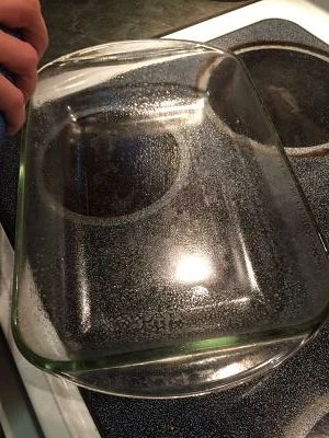 Start by spraying the bottom and sides of a 9x13 inch cake pan and preheating the oven to 350ºF.