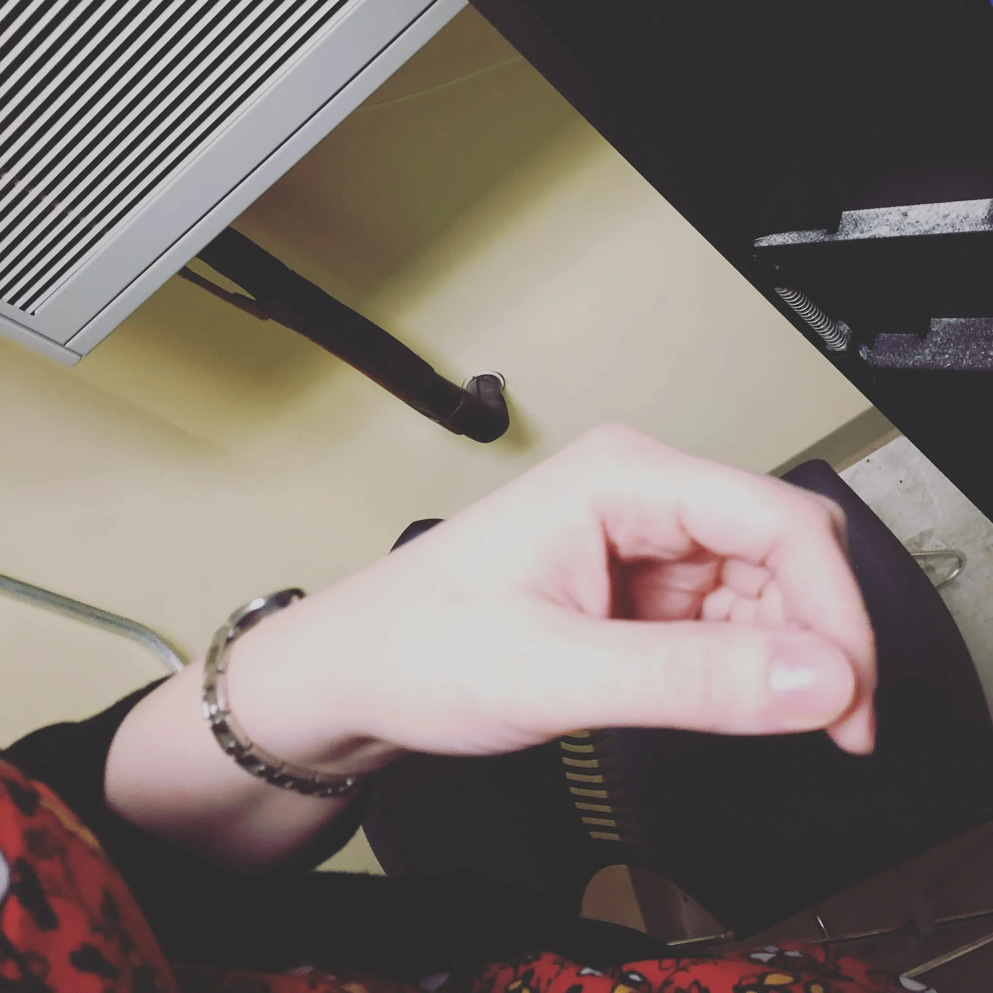 I took a picture of the old setup so I would be sure to get it right with the new device. When I was looking back through the pictures to make sure I got it right, I found this picture of my own hand. I took it on accident, but it made me smile. In an odd way it felt like a kind of self-portrait. You see the chair that I refuse to stand on. You see my watch, which I never go without. But you can also see that I am clearly standing taller than I normally do (chairs aren’t normally that far away) and that I am standing hands-free.