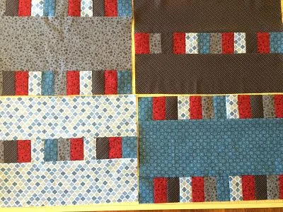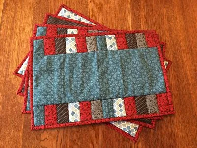 My mom suggested I make some placemats with this color scheme—grey, blue, and red. She needed some for a wedding gift of her own. She thought they would look good, and my mother being the artist that she is was completely right. These colors are beautiful together. I had to make this set in the same colors.